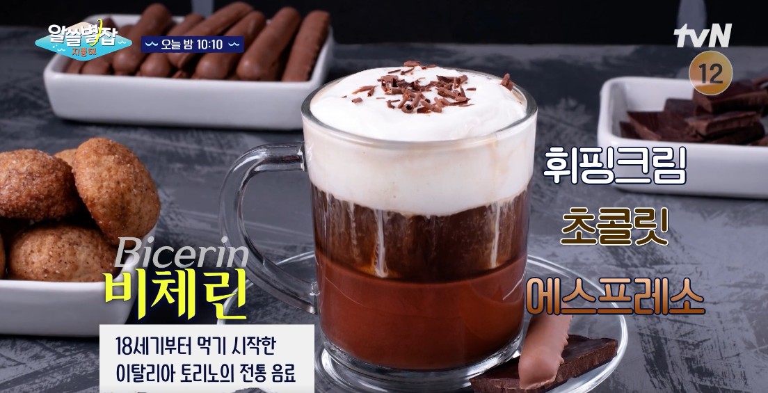 • 비체린 (Bicerin): 에스프레소, 초콜릿, 휘핑크림을 층층이 쌓아 만든 토리노 전통 음료.
