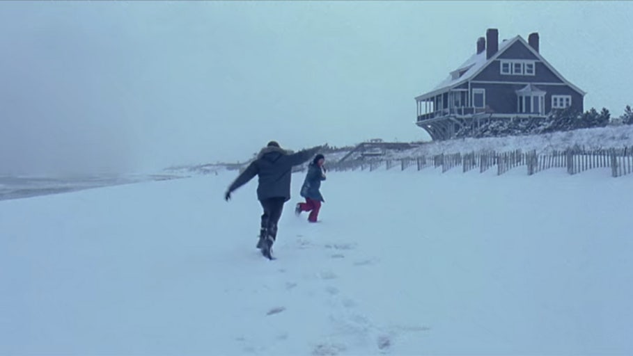 영화 속 해변 장면은 뉴욕 몬탁의 오션비치와 인근 지역에서 촬영되었습니다. 특히 두 사람이 서로를 다시 알아가며 추운 해변을 함께 걷는 장면은 많은 이들에게 강렬하게 남아 있습니다. 하얀 눈이 덮인 모래사장, 흐릿한 하늘 아래의 조용한 파도, 그리고 서로에게 조금씩 다가가는 두 사람의 모습은 마치 한 편의 시처럼 느껴집니다. 이 장면은 영화의 핵심 주제인 ‘사랑이란 무엇인가’에 대한 감성적인 대답처럼 작용합니다.