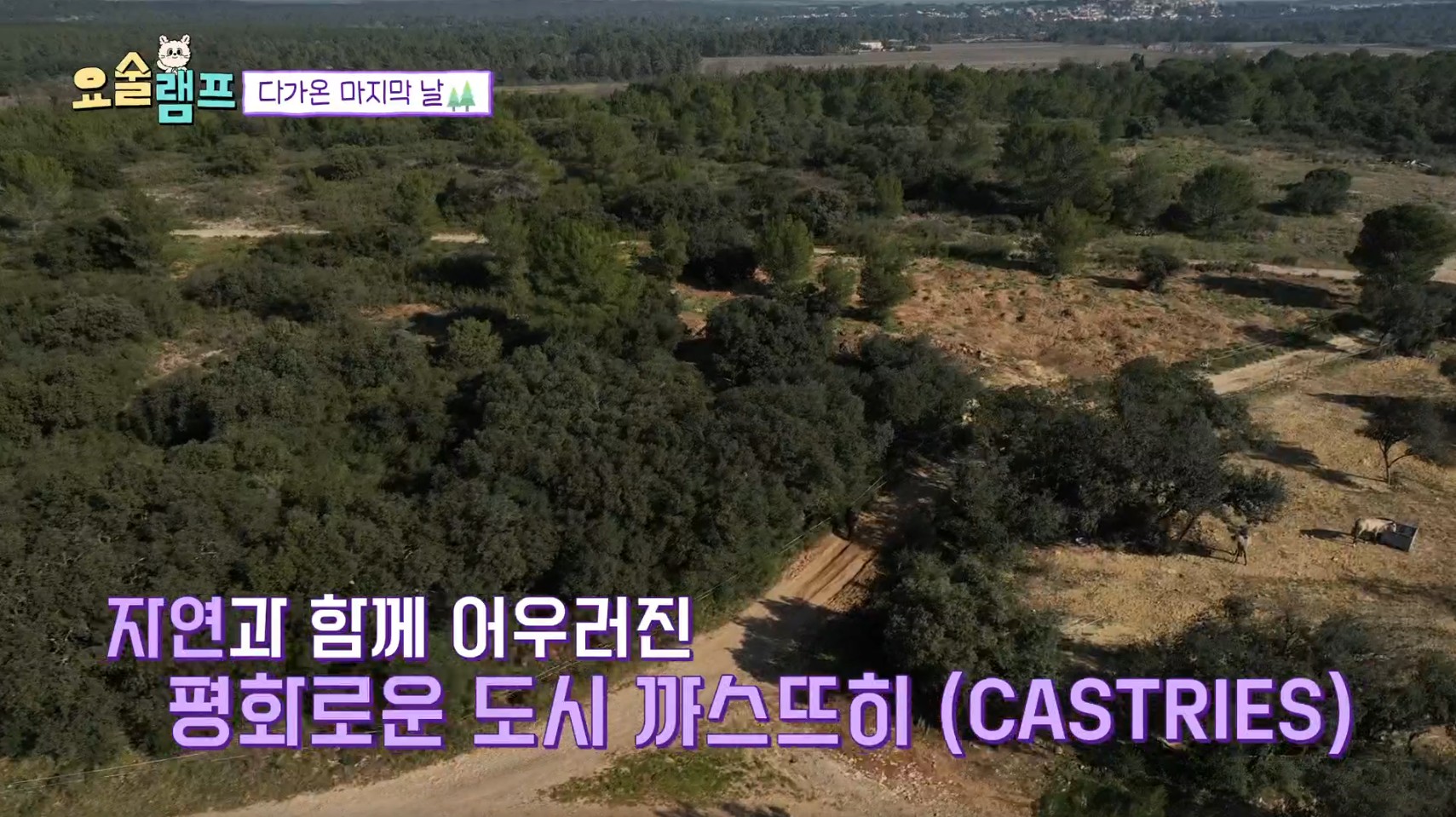 마지막 날, 세븐틴 일정으로 정한과 디노가 먼저 떠나고 남은 다섯 명의 출연진들은 근교 여행지로 떠났습니다. 힐링되는 하루가 되길 바란 제작진의 선택으로 몽펠리에에서 동쪽으로 15km 떨어진 곳에 위치한 도시로 자연과 함께 어우러진 도시, 꺄스뜨히(CASTRIES)에 대해 알아보겠습니다.
