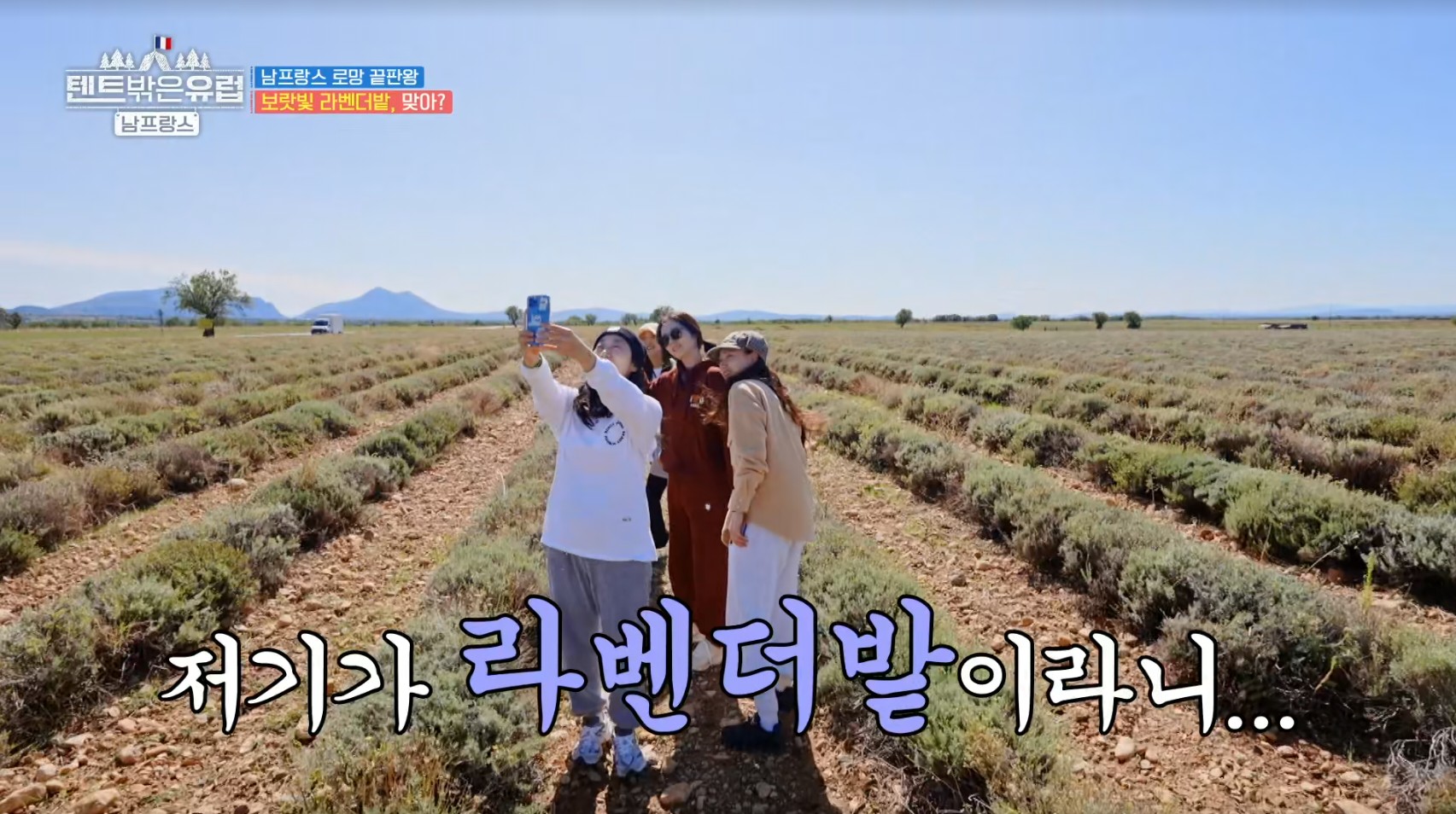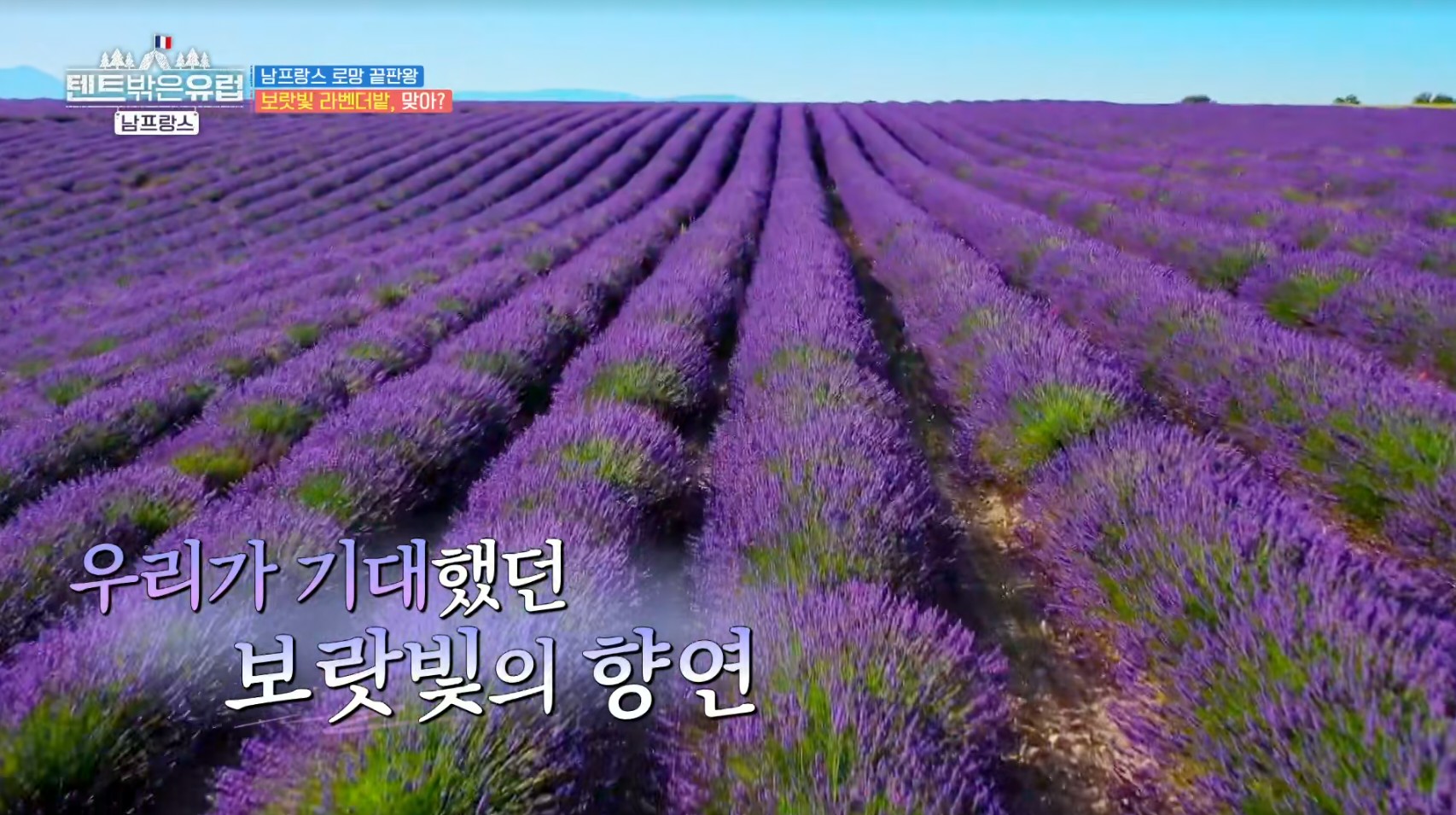 <텐트 밖은 유럽> 남프랑스 편 3화에서는, 프랑스 시골 민박에서의 1박을 위해 이동하게 됩니다. 차량으로 이동 중 넓게 펼쳐진 라벤더 밭을 마주하게 되는데, 방송에서는 라벤더가 만개하는 계절이 아니었기 때문에 예쁜 보라색 장면이 자료화면으로만 나오며 아쉬움을 자아냈습니다. 실제로 프랑스 발랑솔(Valensole)의 경우 남프랑스 여행자들에게는 필수 코스이자 로망 중 하나로 여겨지는 곳으로 SNS에서 많은 인생샷을 만나볼 수 있는 장소입니다.