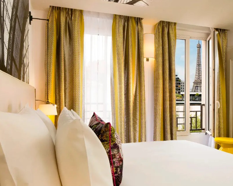 - 호텔 라 콩테스 투 에펠(Hotel La Comtesse Tour Eiffel) : 여러 타입의 객실에서 에펠뷰를 즐길 수 있습니다. 사이드 뷰인 방에서도 고개만 내밀면 에펠탑이 잘 보인다는 후기가 많습니다. (예약 페이지)