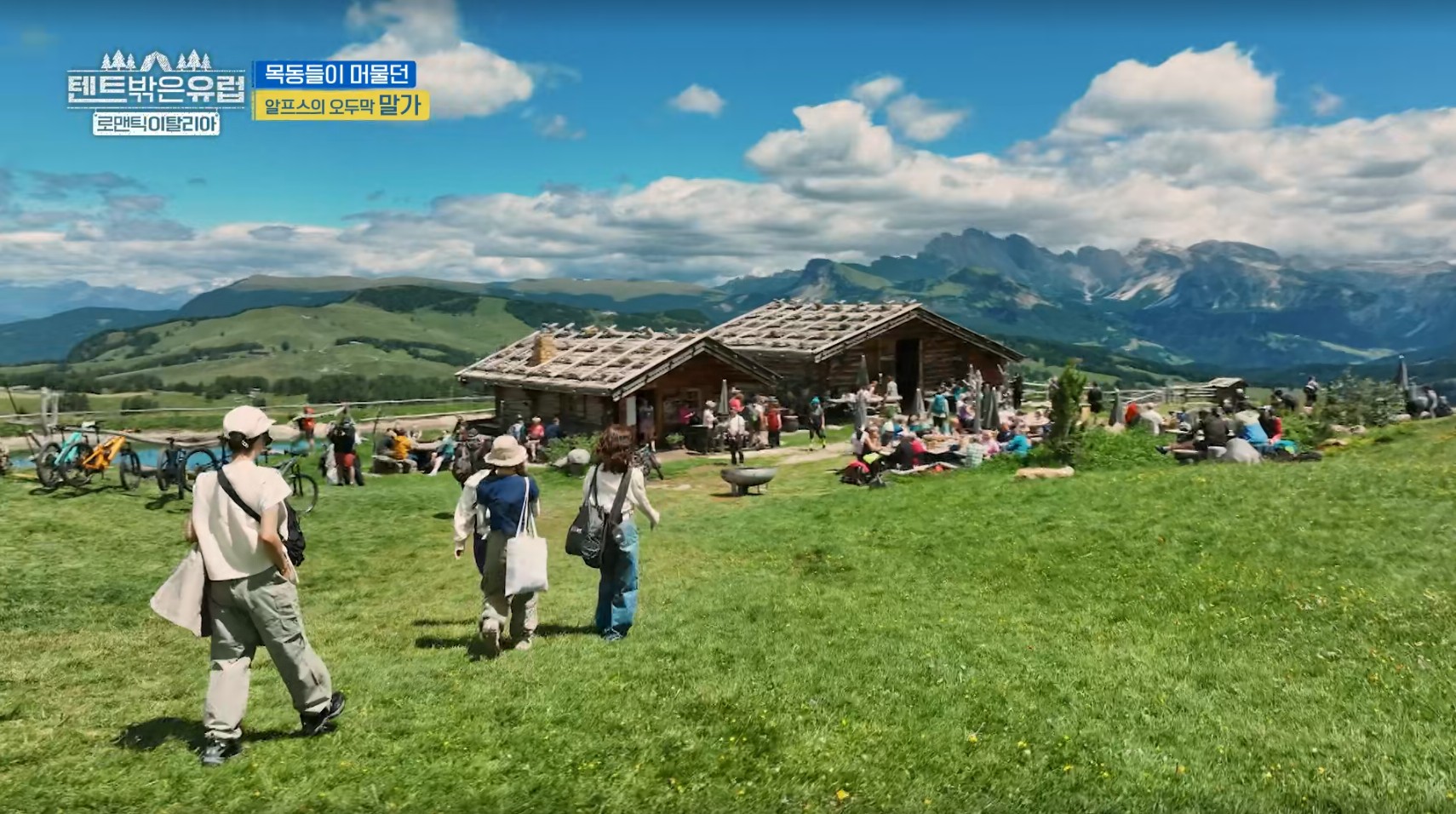 - 특징 : 근처 마을이 아닌 알페디시우시 고원에 있는 산장입니다. <텐트 밖은 유럽> 출연진들과 같이 마을에서 식재료를 구비해 가셔야 합니다.