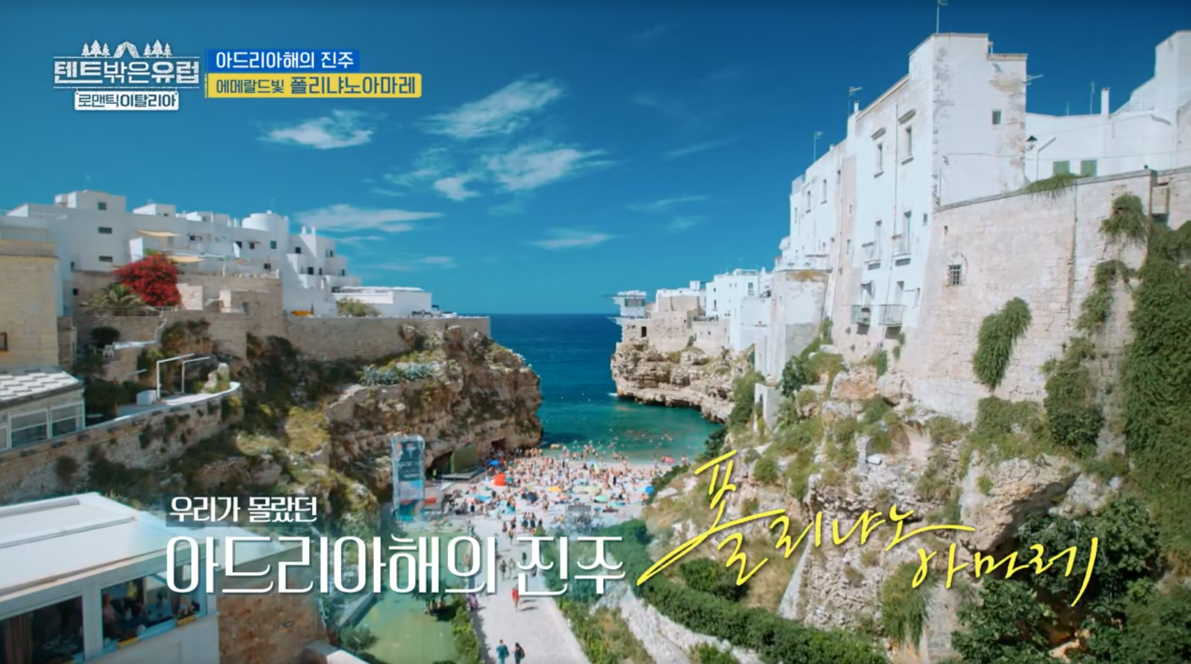저도 바리에서 렌터카를 대여해 폴리냐노 아 마레와 알베로벨로에 다녀왔고, 나중에 꼭 사랑하는 사람과 다시 가고 싶은 코스로 숨겨놓았었는데 이번 텐트 밖은 유럽에서 완벽하게 동일한 코스로 다녀오는 모습을 보고, 나만 알고 싶은 장소가 소문난 것 같아 조금 아쉽기도 했습니다.